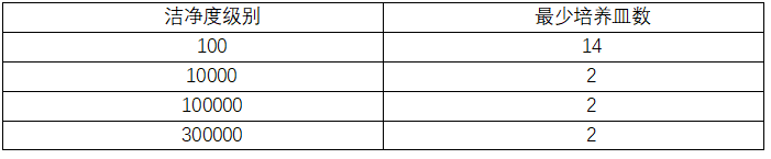在放置培養皿時要滿足最少采樣點數(參考懸浮粒子的最少采樣點數)和最少培養皿數。最少培養皿數見表四。