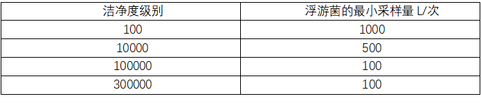 我們在進行懸浮粒子檢測時一般依據《醫藥工業潔凈室(區)懸浮粒子的測試方法》 GB/T 16292-2010為標準。我們可使用光散射粒子計數器或激光塵埃粒子來進行檢測。在進行儀器的設置時,需要保證每次的最小采樣量達到要求。最小采樣量見表一。