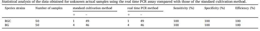 基于此,廣東省科學(xué)院微生物研究所(簡(jiǎn)稱:廣微所)吳清平院士團(tuán)隊(duì)基于其豐富的菌種資源庫和全基因組數(shù)據(jù)庫,采用泛基因組分析方法,針對(duì)性挖掘出BGC和BG的特異性分子靶標(biāo),并據(jù)此建立了常規(guī)PCR及qPCR檢測(cè)方法,靶標(biāo)的特異性和靈敏度都得到了充分驗(yàn)證(見原文鏈接與專利)。廣東環(huán)凱生物科技有限公司,作為院士成果轉(zhuǎn)換基地,進(jìn)一步研制出能同時(shí)檢測(cè)BGC和BG的雙重qPCR試劑盒(詳情請(qǐng)見官網(wǎng)),檢測(cè)靈敏度可低至102 CFU/mL,特異性100%,且具備較好的抗干擾性能;在實(shí)際樣本檢測(cè)中,也展現(xiàn)出了極佳的靈敏度和特異性(均為100%),如表1。同時(shí),該試劑盒已在吉林、遼寧、河南、上海、福建、廣東等省市疾控、檢測(cè)機(jī)構(gòu)及企業(yè)廣泛使用,獲得使用者的一致好評(píng)。總的來說,吳清平院士團(tuán)隊(duì)著眼于守護(hù)食品安全,成功自主研發(fā)了快速定向識(shí)別產(chǎn)米酵酸細(xì)菌的核酸快速檢測(cè)試劑盒。這項(xiàng)創(chuàng)新成果的推出,將極大地促進(jìn)對(duì)產(chǎn)米酵酸細(xì)菌的廣泛監(jiān)測(cè)工作,為國(guó)民“餐桌安全”保駕護(hù)航。