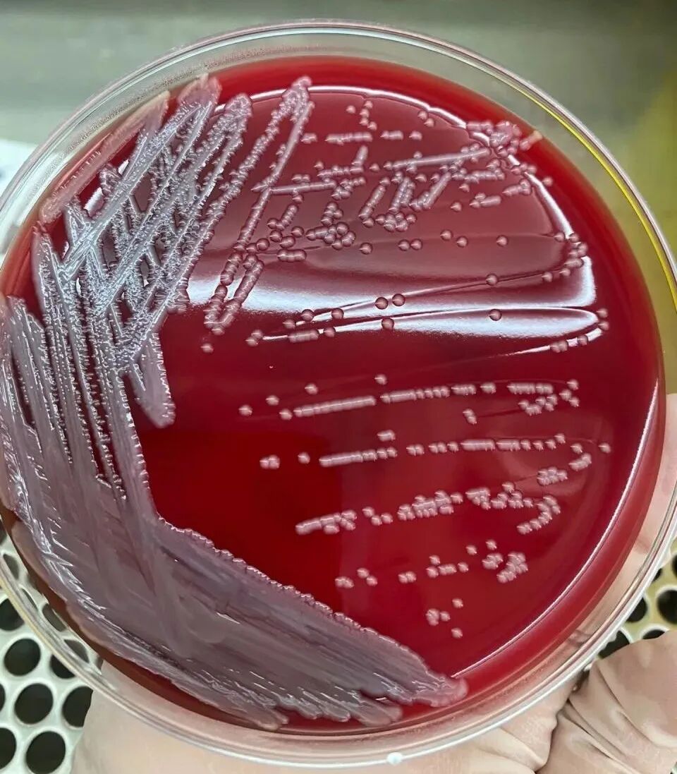 在血瓊脂平板上形成灰白色、圓形、光滑、邊緣整齊的菌落,氧化酶試驗陰性,觸酶試驗陽性,硝酸鹽還原試驗陰性,能夠氧化分解葡萄糖。