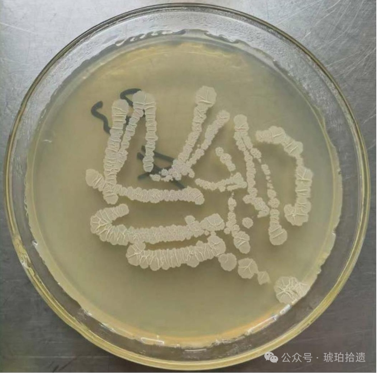 表面:干燥、粗糙、皺褶狀(典型枯草芽孢桿菌群特征)。