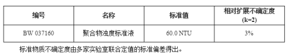 本標準溶液的標準值通過高精度濁度計與國家一級標準物質(zhì)福爾馬肼濁度GBW12001比對法定值。通過使用滿足計量學特性要求的制備、測量方法和計量器具,確保標準物質(zhì)量值的溯源性。