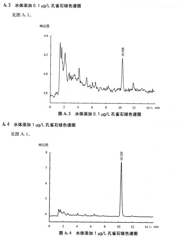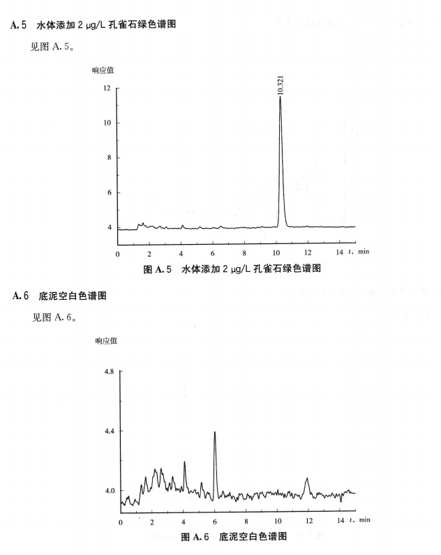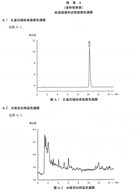 孔雀石綠經硼氫化鉀還原為其代謝產物隱色孔雀石綠后,水樣經過濾,底泥試樣經乙腈和二氯甲烷混合溶劑提取,所得樣液加入甲酸酸化,經固相萃取柱富集、凈化,反相色譜柱分離,熒光檢測器檢測,外標法定量。